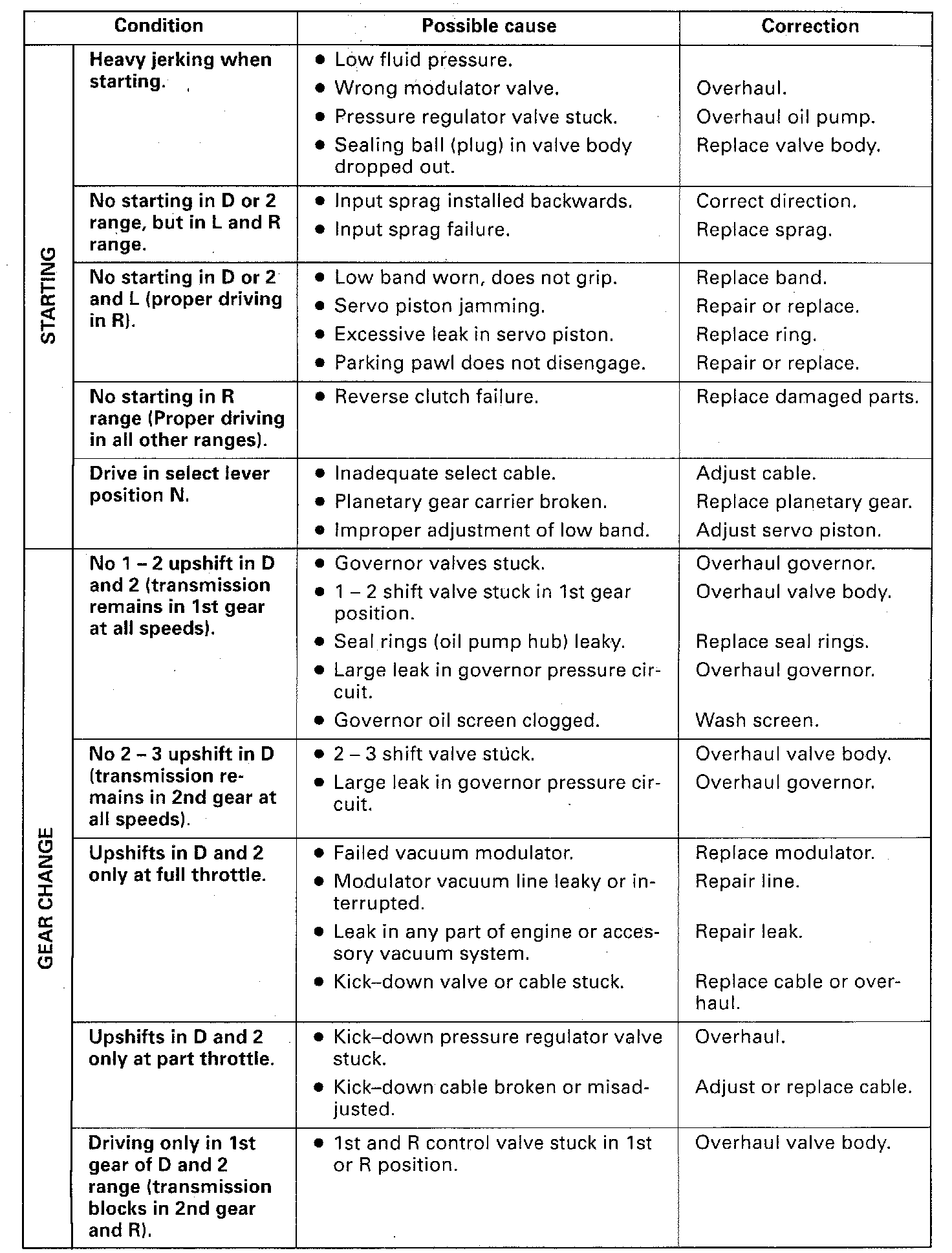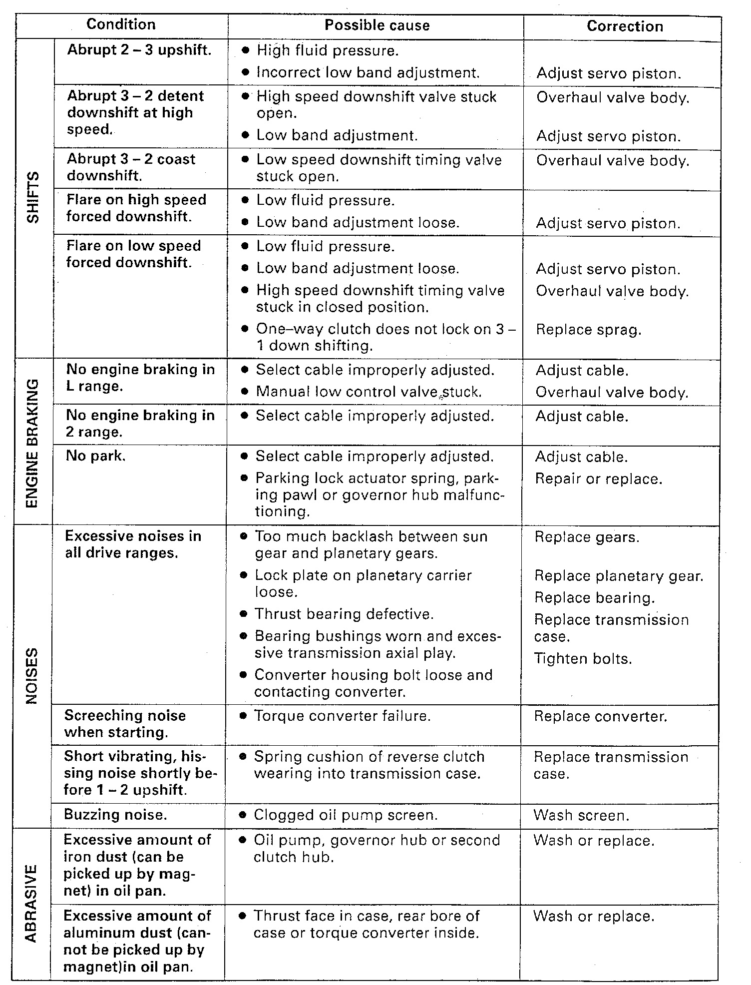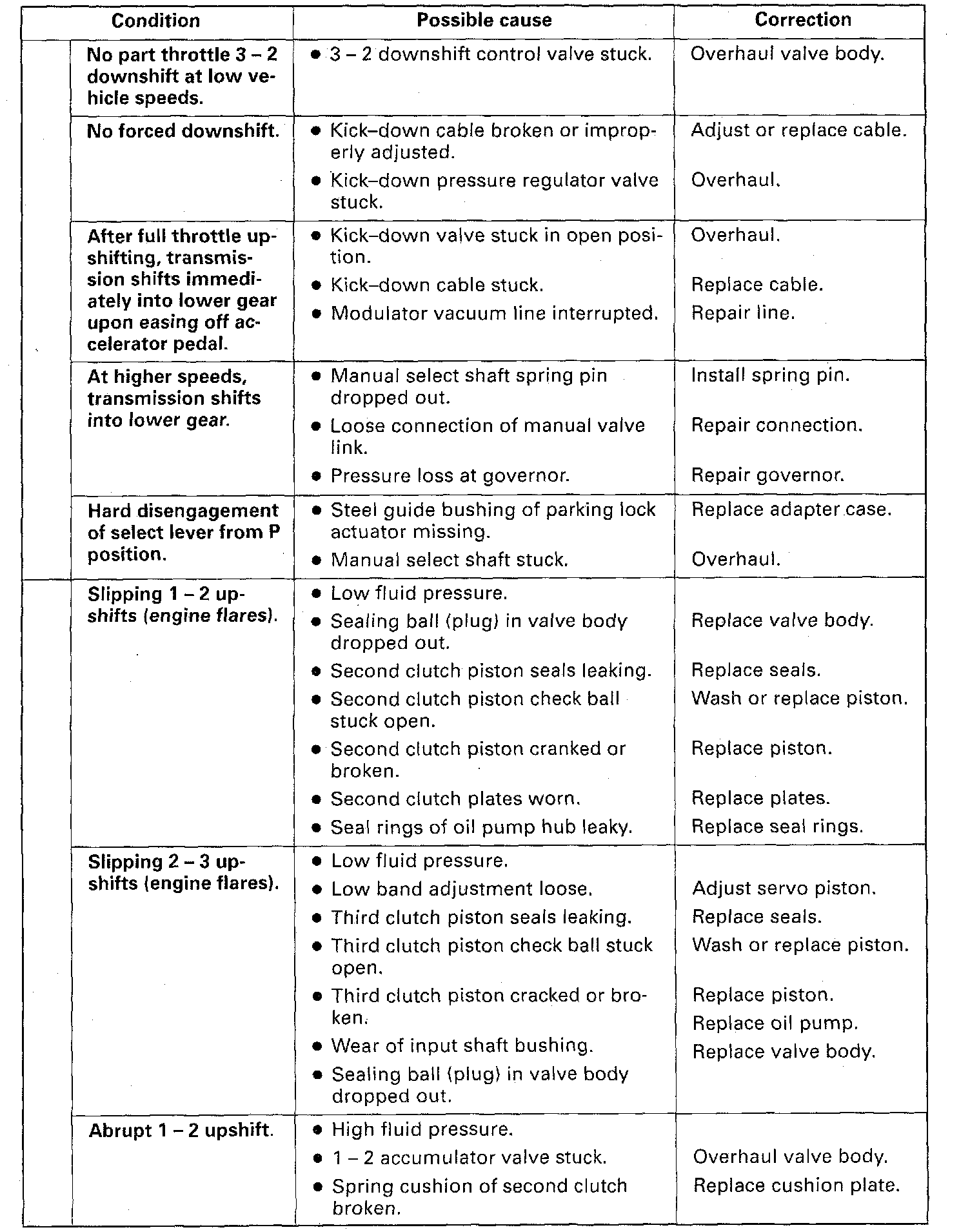 3. If engine performance indicates an engine tune-up is required, this should be performed before road testing is completed or transmission correction attempted. Poor engine performance can result in transmission problems.