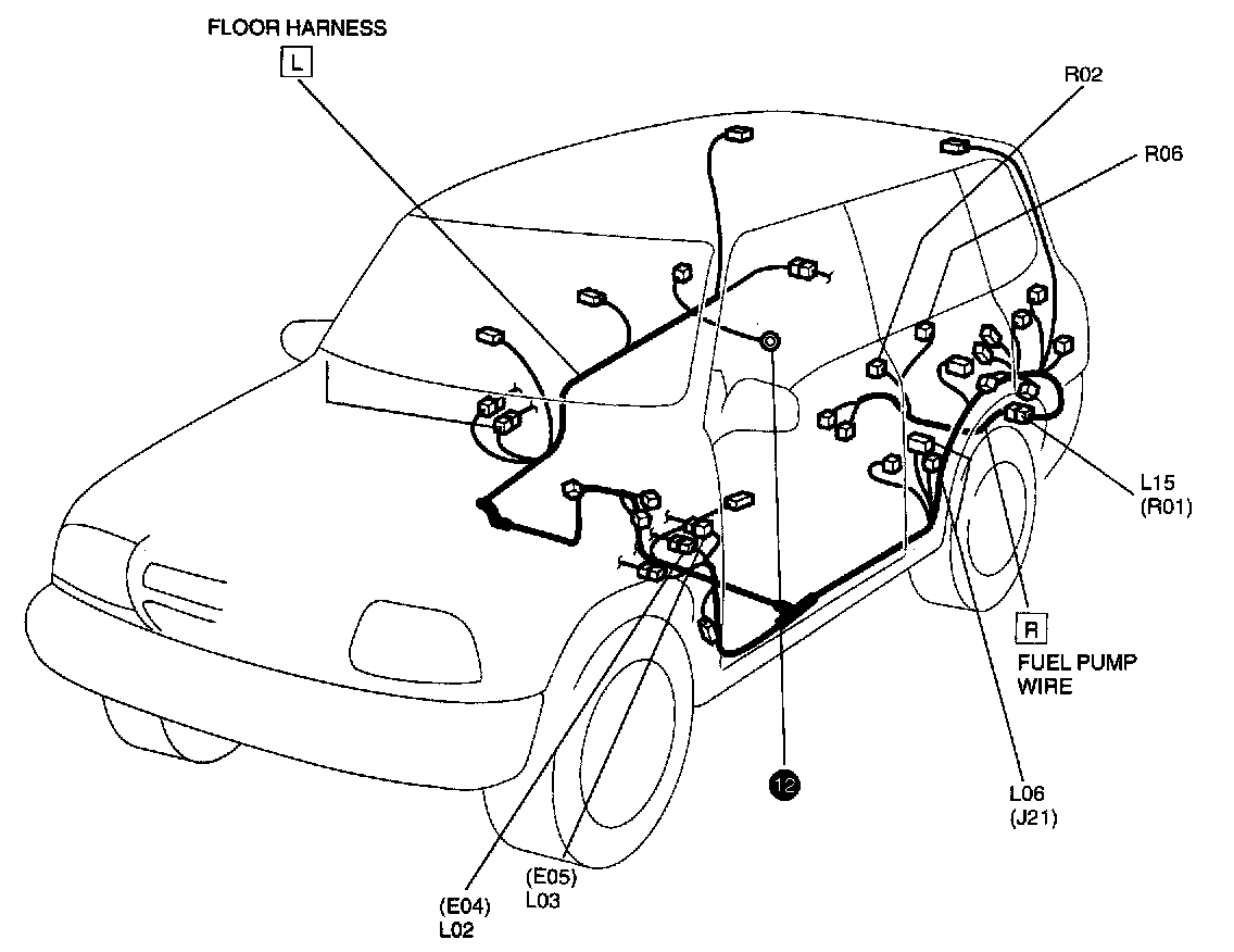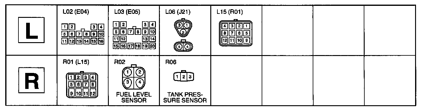 Floor Harness (Connectors "L") and Fuel Pump Wire (Connectors "R")
