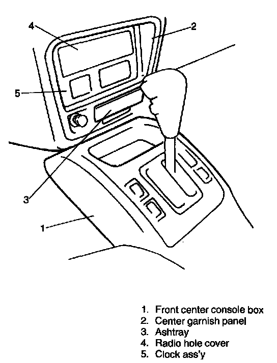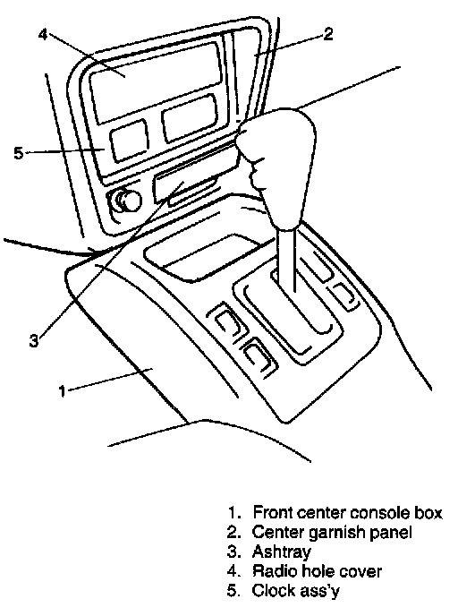 5. Remove ashtray and tuner assembly, clock assembly, tuner pocket, radio hole cover, etc.