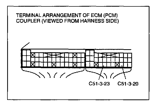 6. Turn ignition switch ON and check voltage between C51-3-23 and C51-3-20 terminal.