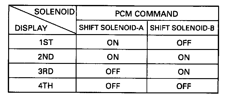 The gear position is determined on the basis of the command state signals generated from PCM to shift solenoids A and B (#1 and #2) and displayed as shown in the table.