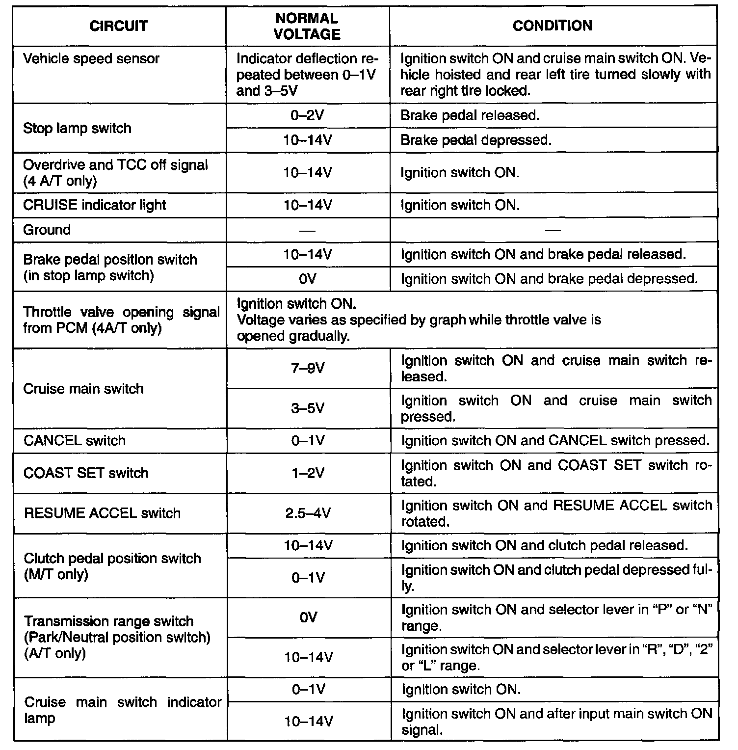 CRUISE CONTROL MODULE AND ITS CIRCUIT INSPECTIONCAUTION: Cruise control module can not be checked by itself. It is strictly prohibited to connect voltmeter or ohmmeter to cruise control module with coupler disconnected from it.
