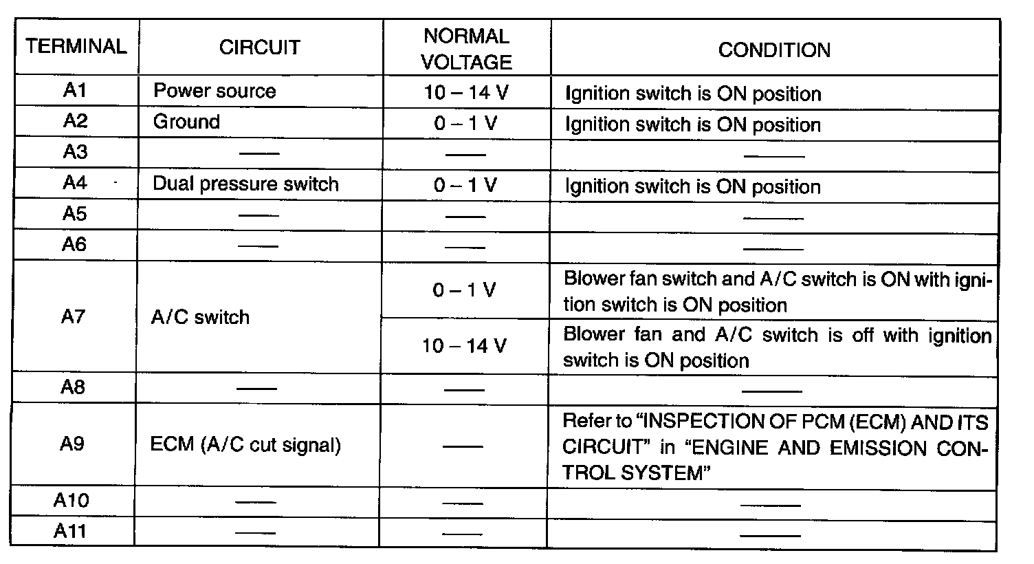 INSPECTION OF A/C CONTROLLER AND ITS CIRCUITS