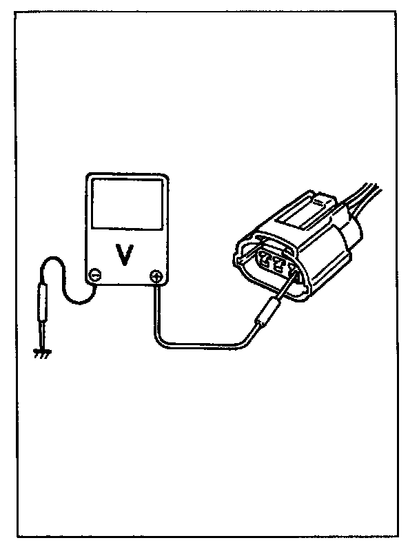 1. Connect voltmeter to "B +" terminal of MAF sensor coupler disconnected and ground.