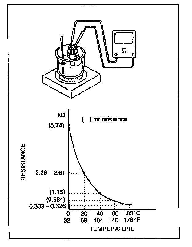 Immerse temperature sensing part of ECT sensor in water and measure resistance between sensor terminals while heating water gradually.