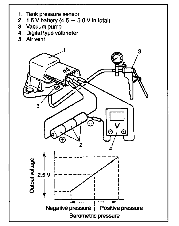 Also, check if voltage reduces when vacuum is applied up to 6.6 kPa (50 mmHg) by using vacuum pump and if it increases when positive pressure applied up to 6.6 kPa (50 mmHg) by using hand pump.