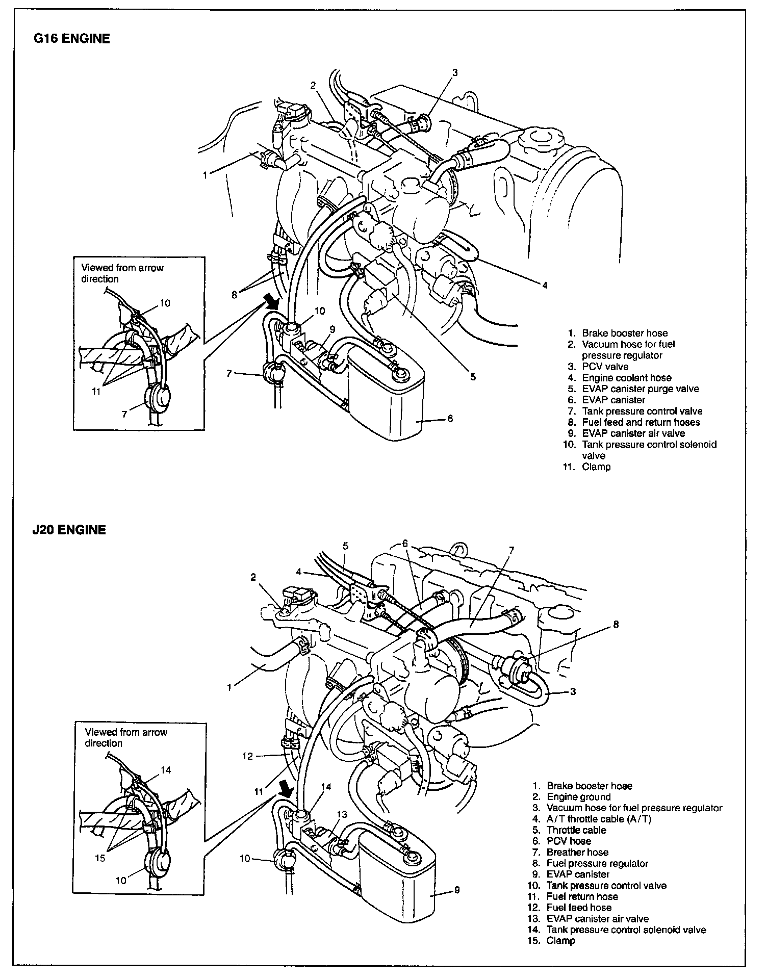 When hoses are disconnected and system components are removed for service, reinstall components properly, and route and connect hoses correctly after service. Refer to Emission Control Information Label or figure for proper routing of hoses.