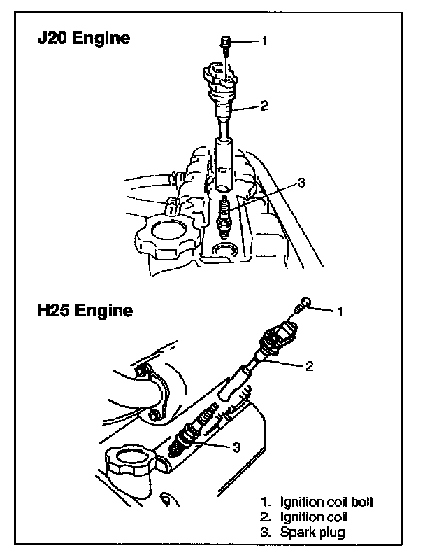 3. Remove ignition coil bolt, and then pull out ignition coil assembly.