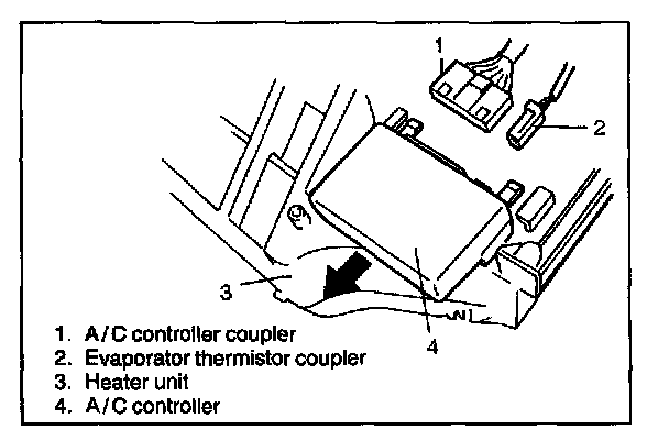 5. Disconnect A/C controller coupler, evaporator thermistor coupler.