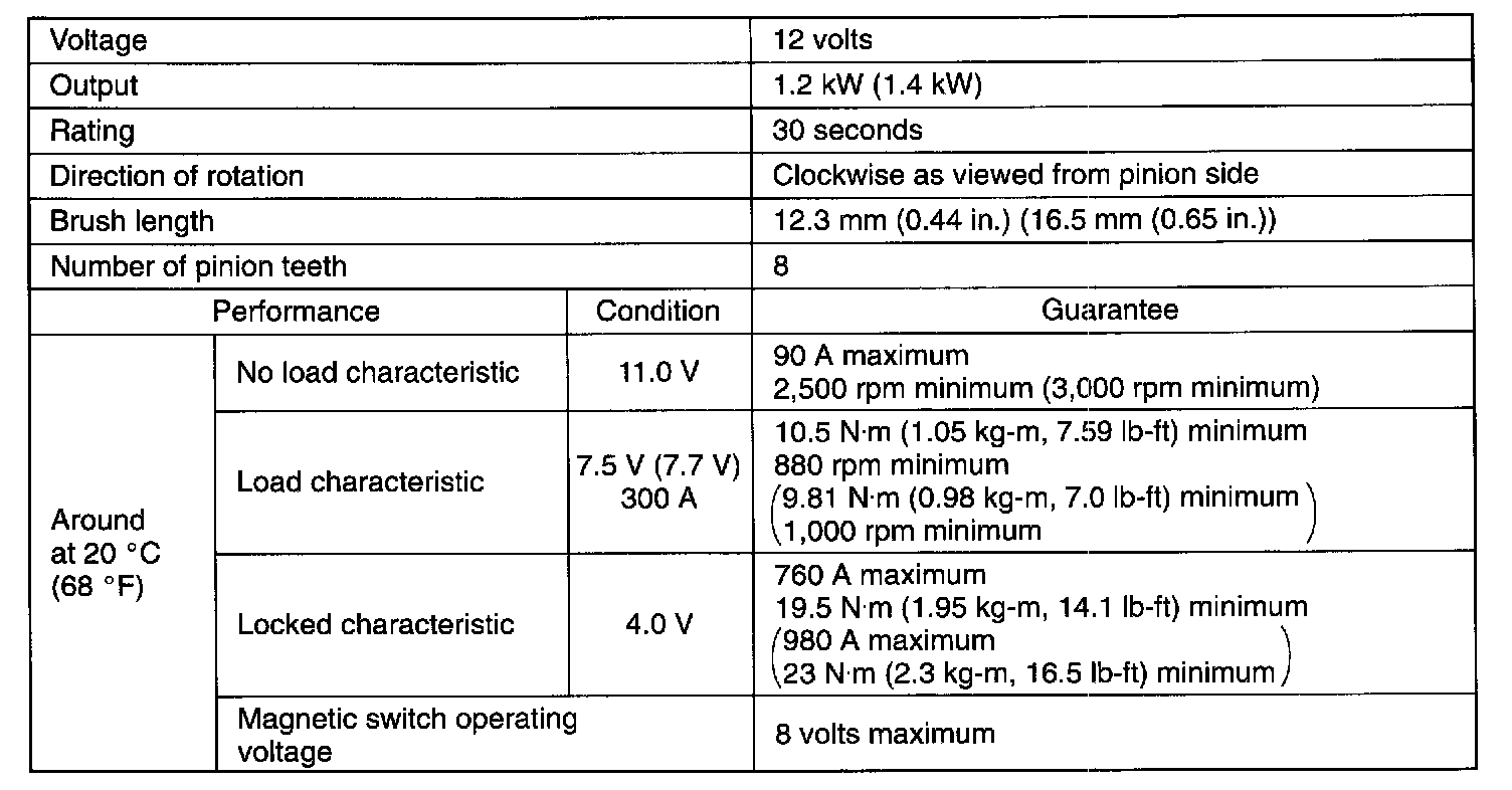 Starting System: Specifications