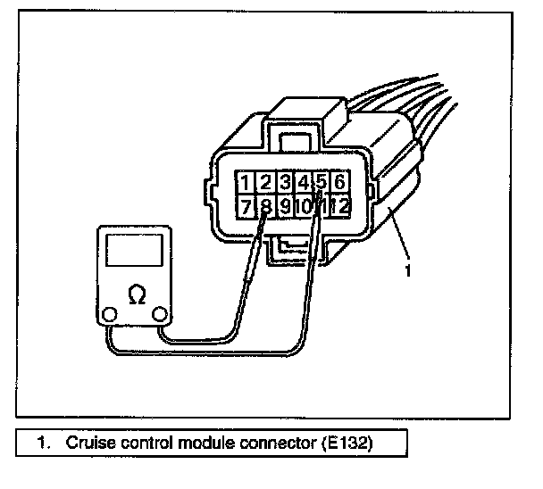 CAUTION: Never touch terminals of cruise control module itself or connect voltmeter or ohmmeter.