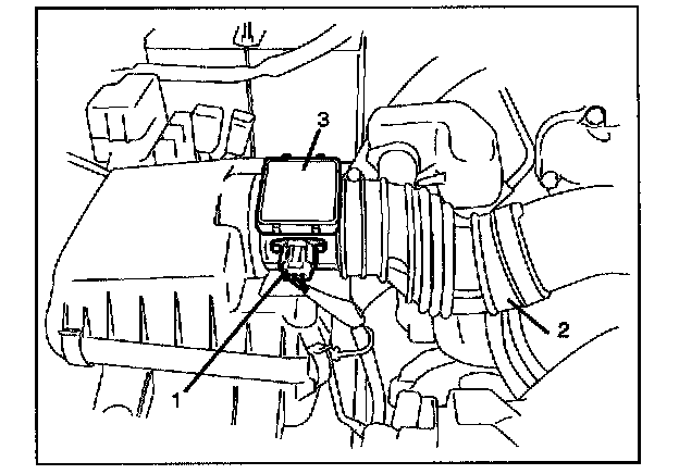 REMOVAL1. Disconnect negative cable (-) at battery and coupler (1) from MAF sensor (3).