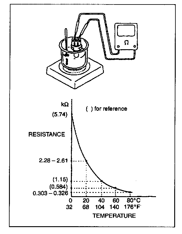 Immerse temperature sensing part of ECT sensor in water and measure resistance between sensor terminals while heating water gradually.