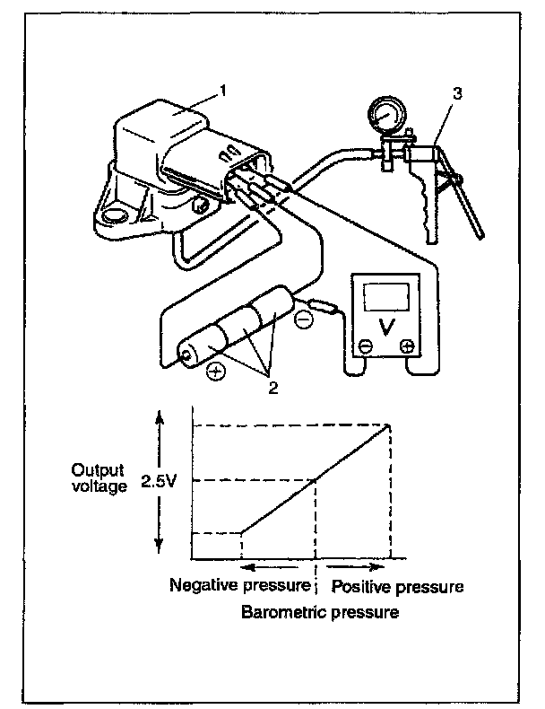 Also, check if voltage reduces when vacuum is applied up to 6.6 kPa (50 mmHg) by using vacuum pump (3) and if it increases when positive pressure applied up to 6.6 kPa (50 mmHg) by using hand pump.
