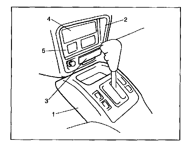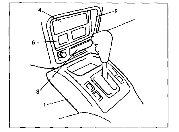5. Remove ashtray (3) and tuner assembly, clock assembly (5), tuner pocket, radio hole cover (4), etc.