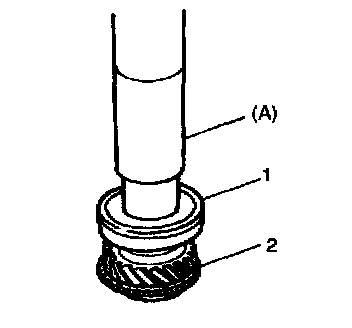 INPUT SHAFT ASSEMBLY1. Bring bearing (1) so that its groove for circlip is in the front of input shaft (2) and press-fit with special tool and press.