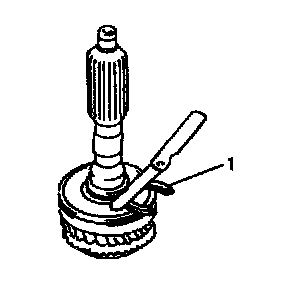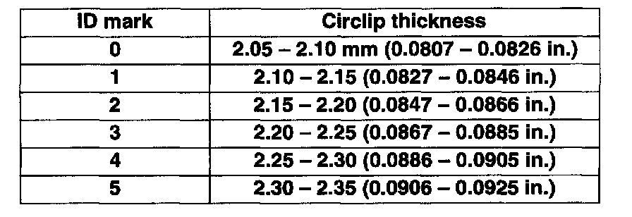 2. Select circlip (1) that will make thrust clearance of bearing 0.1 mm (0.0039 inch) or less and install it.