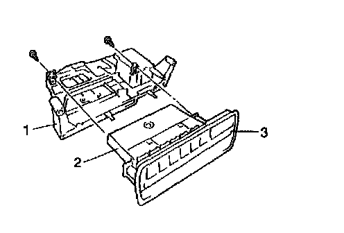 5. Remove ashtray, center garnish (1) and instrument glove box compartment.