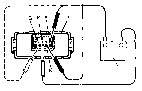 2. Connect (+) wire and (-) wire of 12 V battery to terminal "A", "E" and "F" as shown in figure.