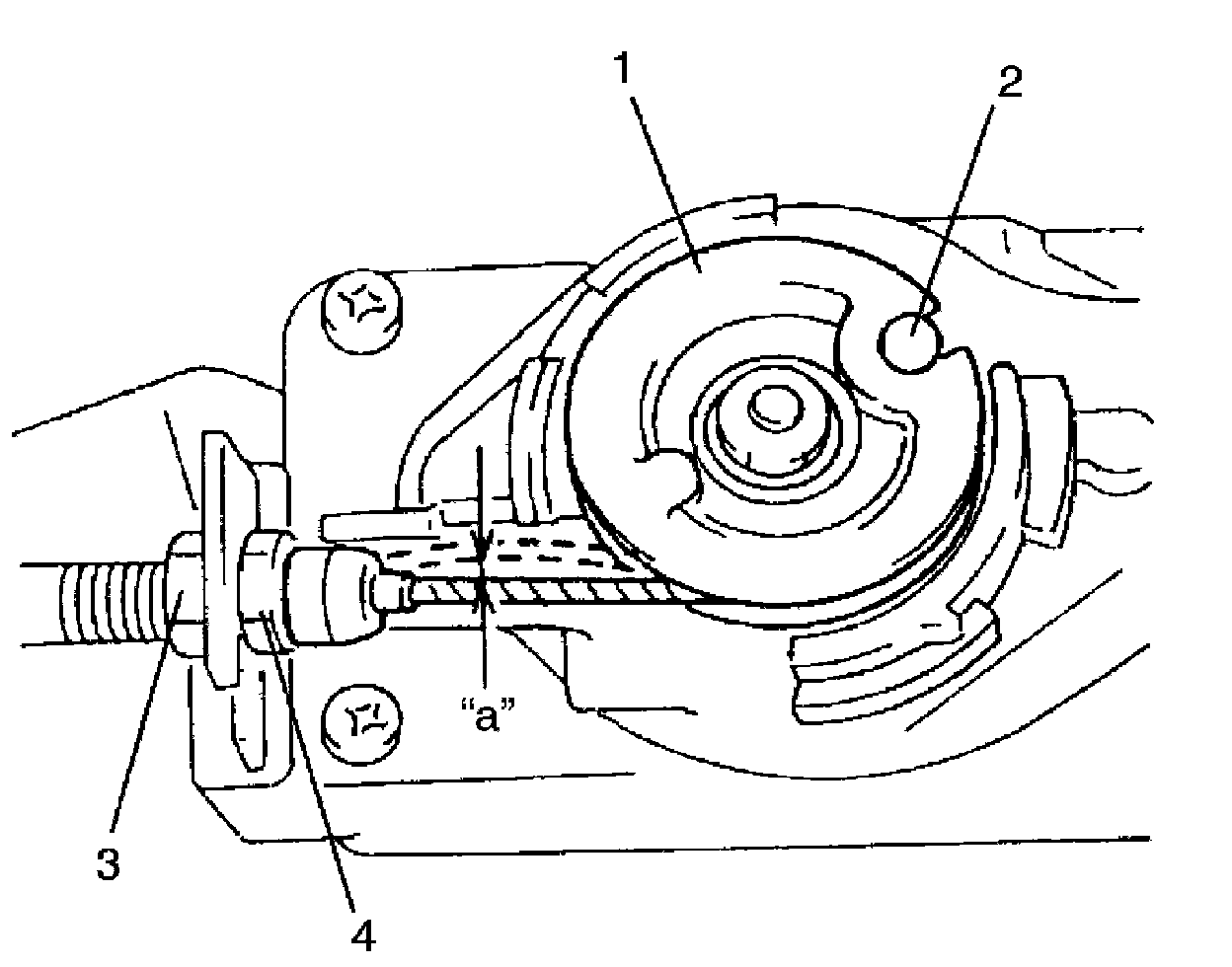 Cruise cable play "a": 1 - 2 mm (0.04 - 0.08 in.)
