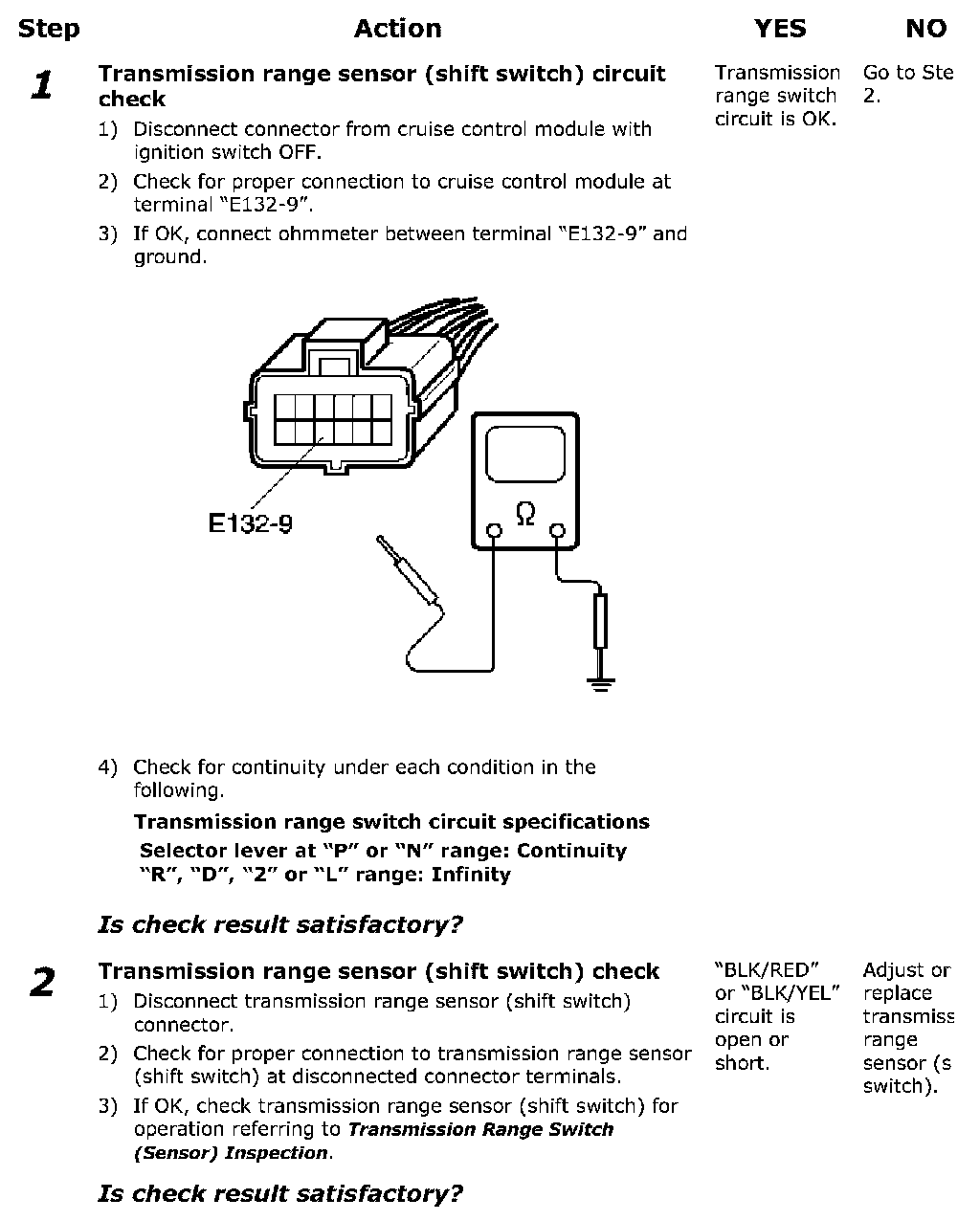Transmission Range Sensor (Shift Switch) Circuit Check