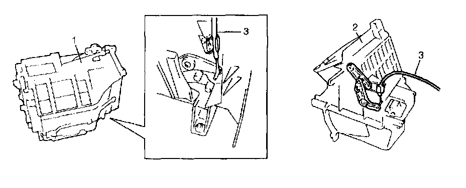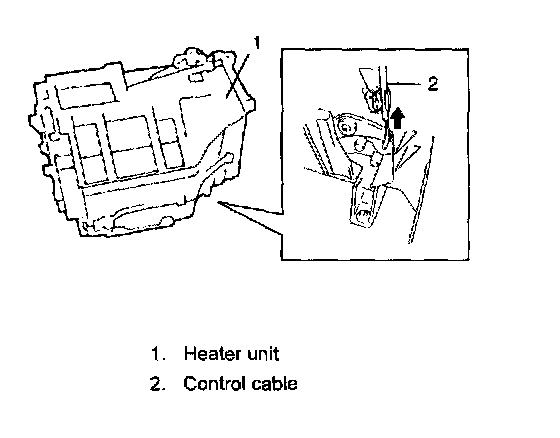 5. Disconnect control cables (3) from blower motor unit (2) and heater unit (1).