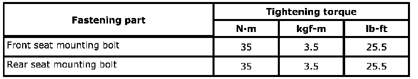 The specified tightening torque is also described in the following. Front Seat Components