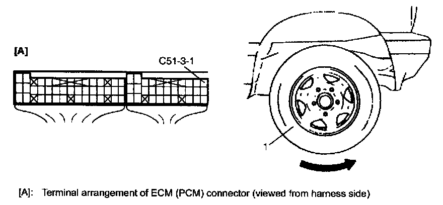 4. Connector voltmeter between VSS terminal C51-3-1 of ECM (PCM) connector and body ground.