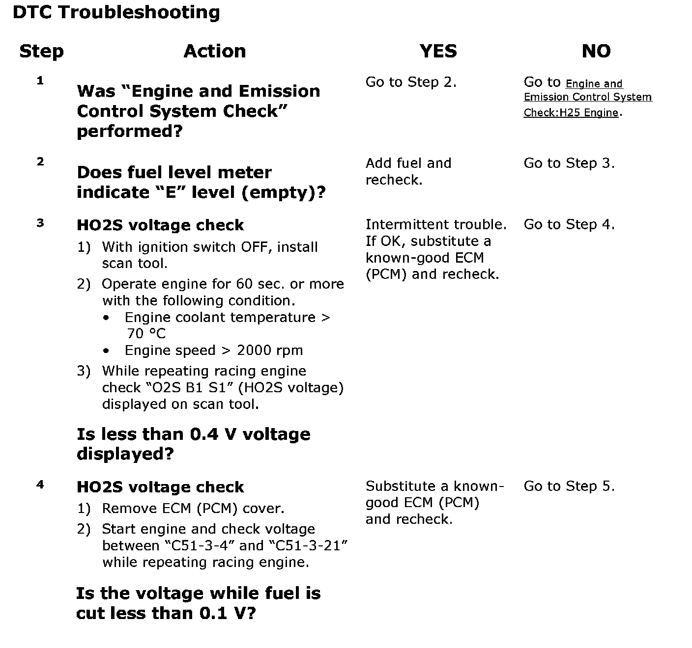 DTC P0131: HO2S (Bank-1 Sensor-1) Circuit Low Voltage