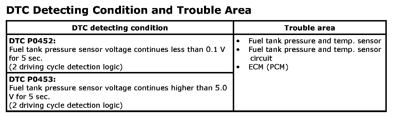 DTC P0452: Evaporative Emission Control System Pressure Sensor Low / High Input