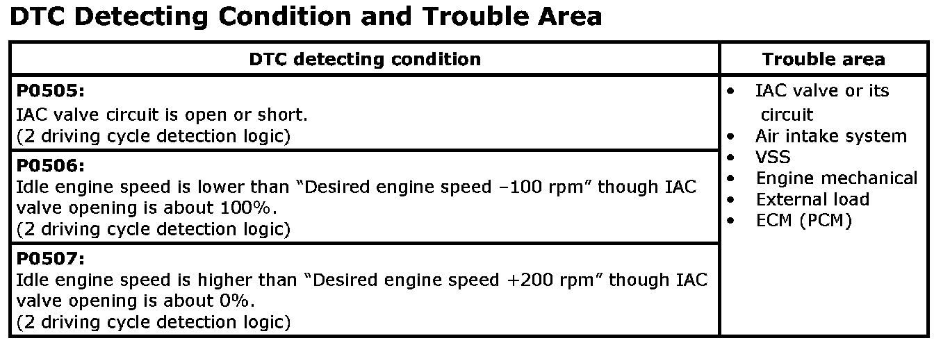 DTC P0505: Idle Control System / RPM Lower than Expected / RPM Higher than ExpectedWiring Diagram: