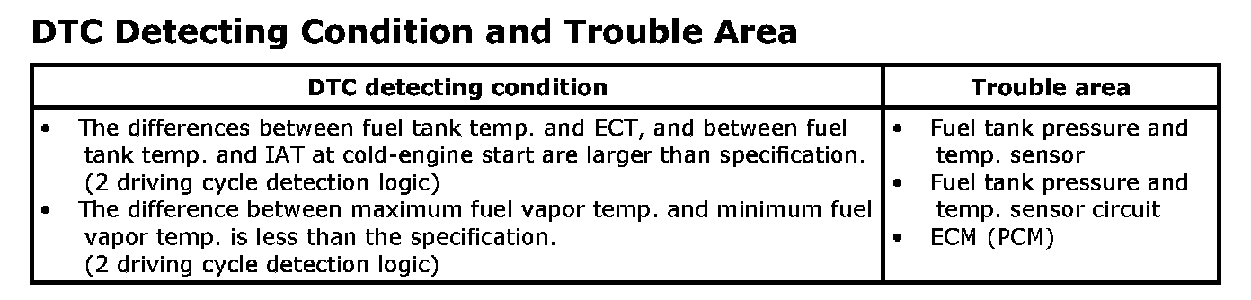 - The following DTCs are not detected: P0111, P0116, P0451, P0452, P0453 and P0461