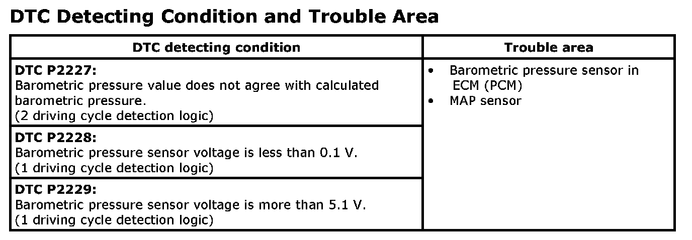 DTC P2228: Barometric Pressure Circuit Performance Problem / Low / HighSystem Description