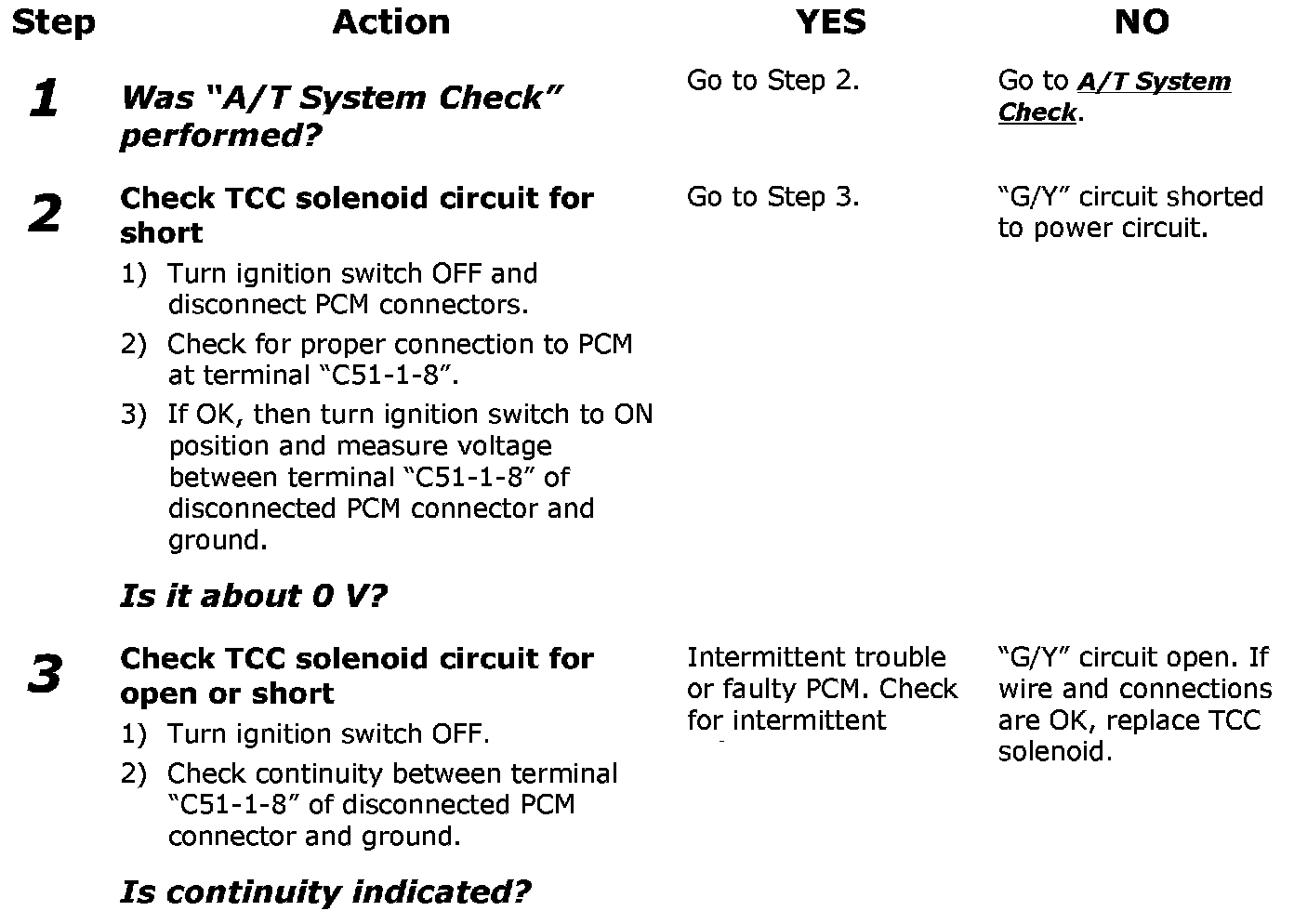 Voltage at terminal "C51-1-8" of PCM is high while TCC solenoid OFF is commanded.
