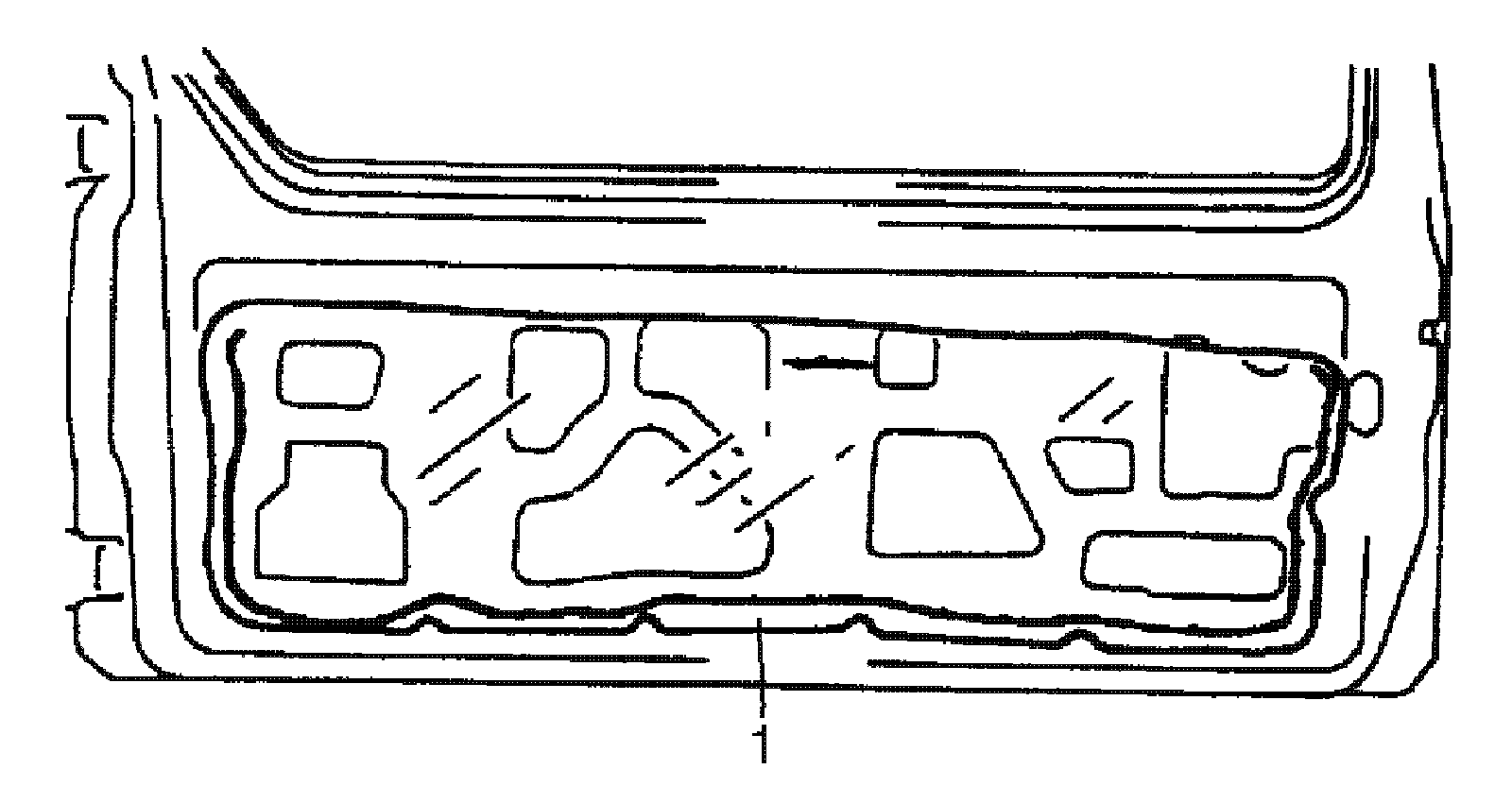 - Apply sealing compound to peripheral of door hem area and reinstall door sealing cover (1).