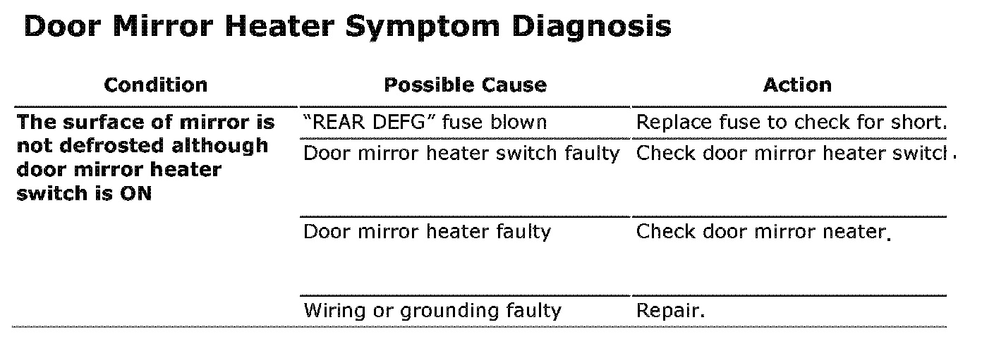 Door Mirror Heater Symptom Diagnosis: