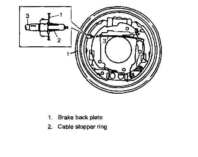 5. Remove brake shoes and disconnect parking brake cable (3) from parking brake shoe lever.