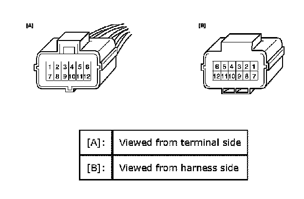 2. Check resistance between each pair of terminals of disconnected connectors as shown in the following table.