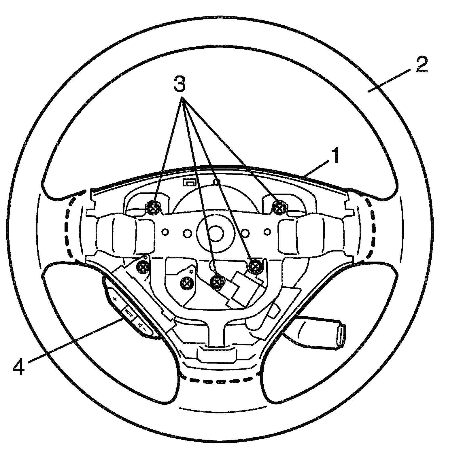 3. Remove audio control switch (if equipped) (4) from steering wheel (2).