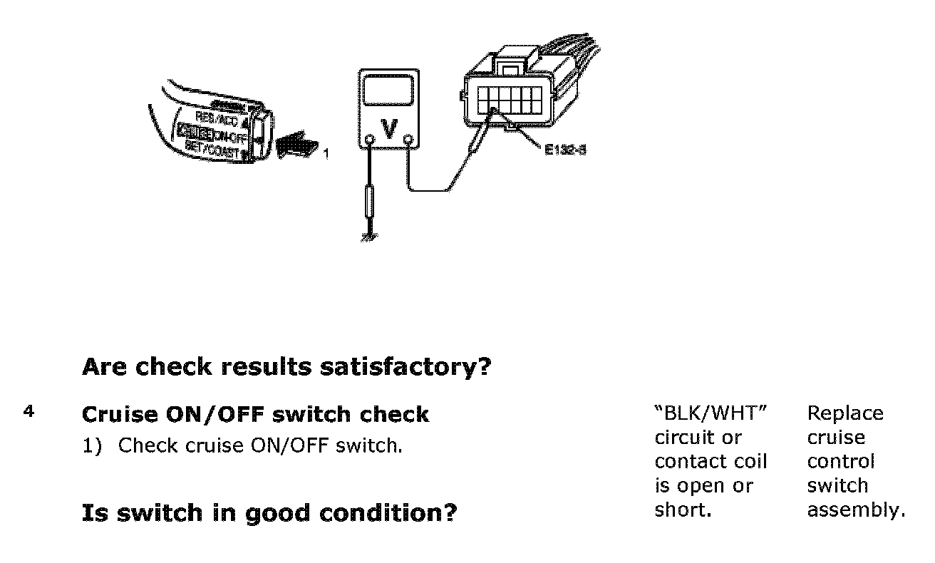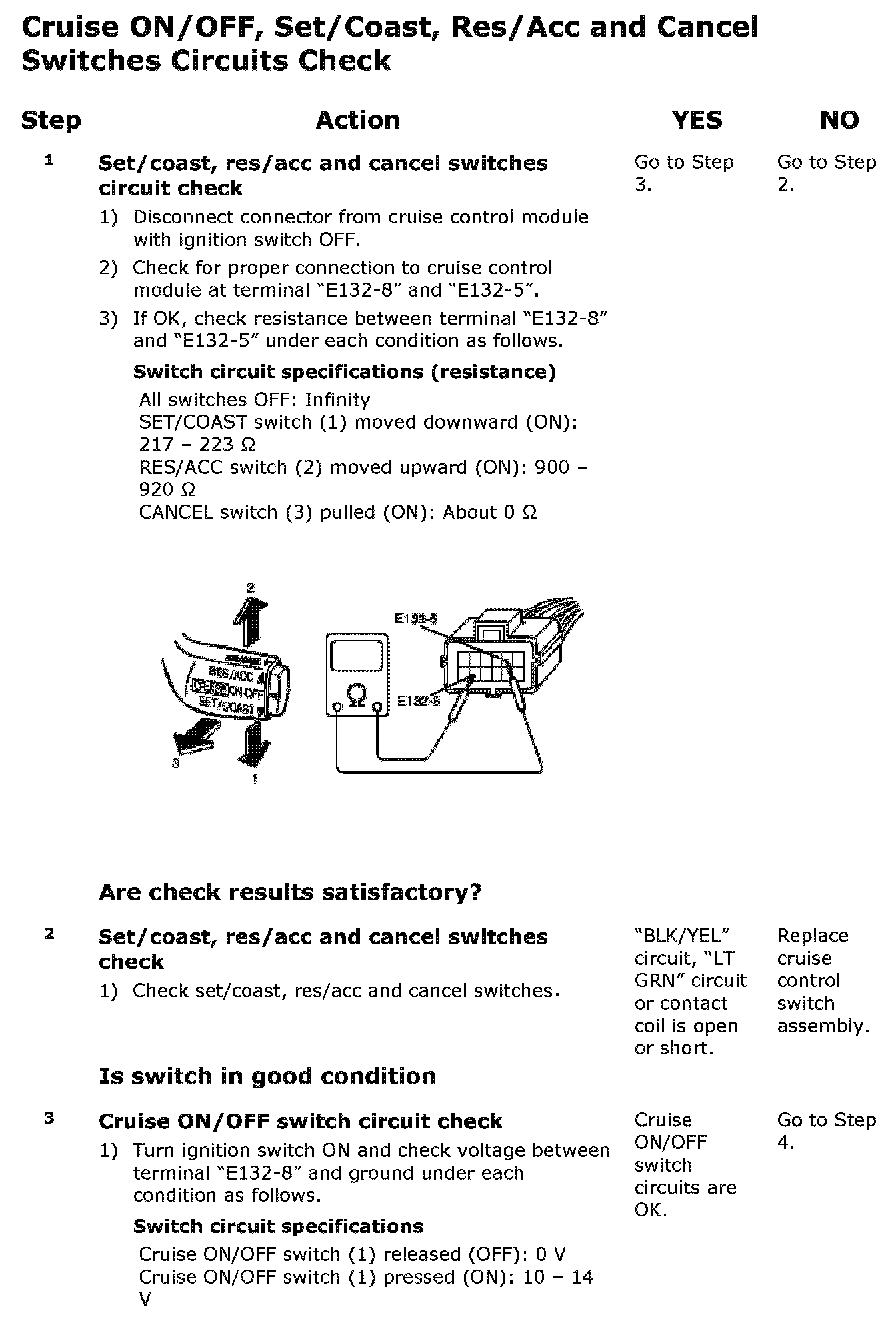 Cruise ON/OFF, Set/Coast, Res/Acc and Cancel Switches Circuits Check