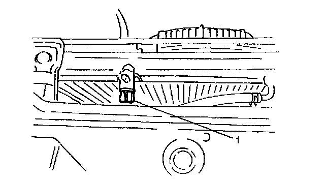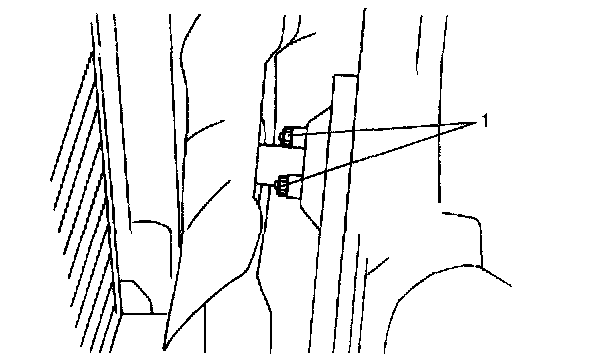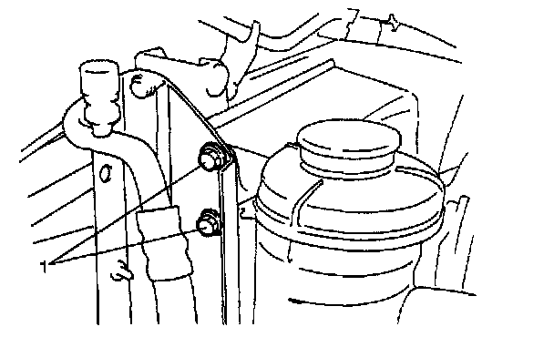 6. Remove P/S oil tank stay bolts (1) from radiator stay.