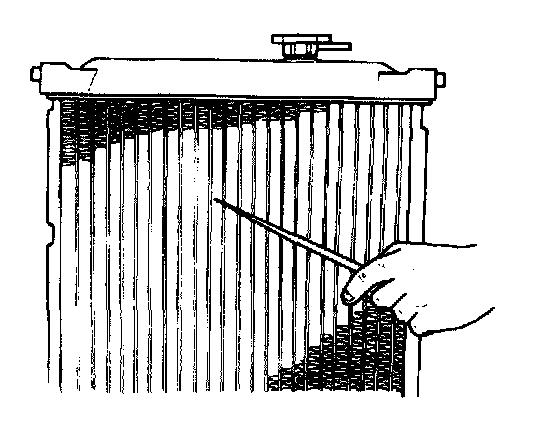 Check radiator for leakage or damage. Straighten bent fins, if any.