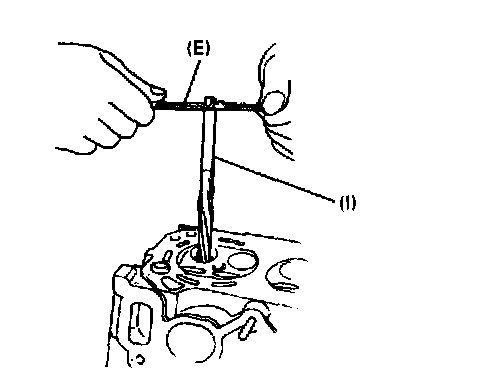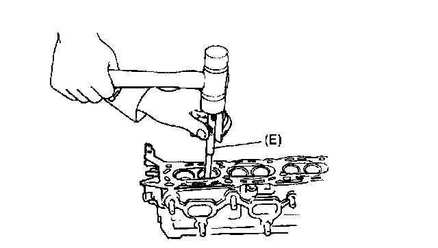 5. Using special tool (E) (Valve guide remover), drive valve guide out from combustion chamber side to valve spring side.
