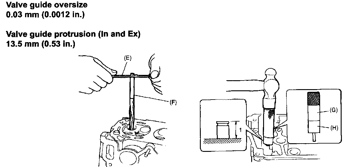 NOTE: Do not reuse valve guide once disassembled. Be sure to use new valve guide (Oversize) when assembling.