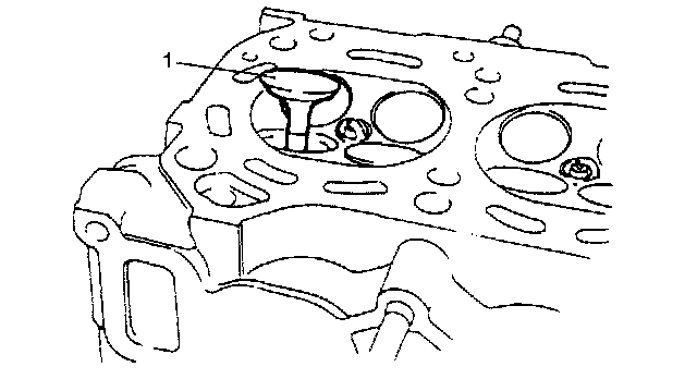 6. Install valve (1) to valve guide. Before installing valve to valve guide, apply engine oil to stem seal, valve guide bore, and valve stem.