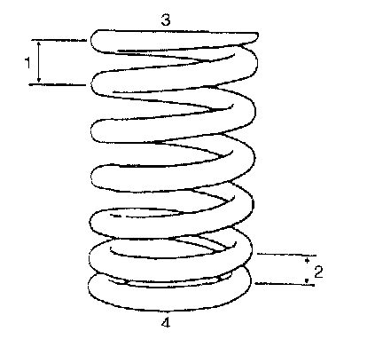 7. Install valve springs (inner and outer) and spring retainer. Each valve spring has top end (large-pitch end (1)) and bottom end (small-pitch end (2)). Be sure to position spring in place with its bottom end (valve spring retainer side (3)) facing the bottom (valve spring seat side (4)).