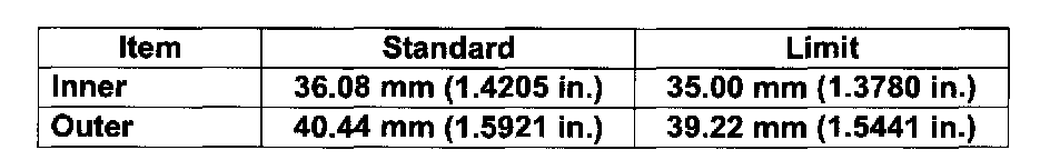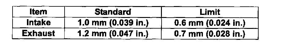 - Measure thickness of valve head. If measured thickness exceeds limit, replace valve.