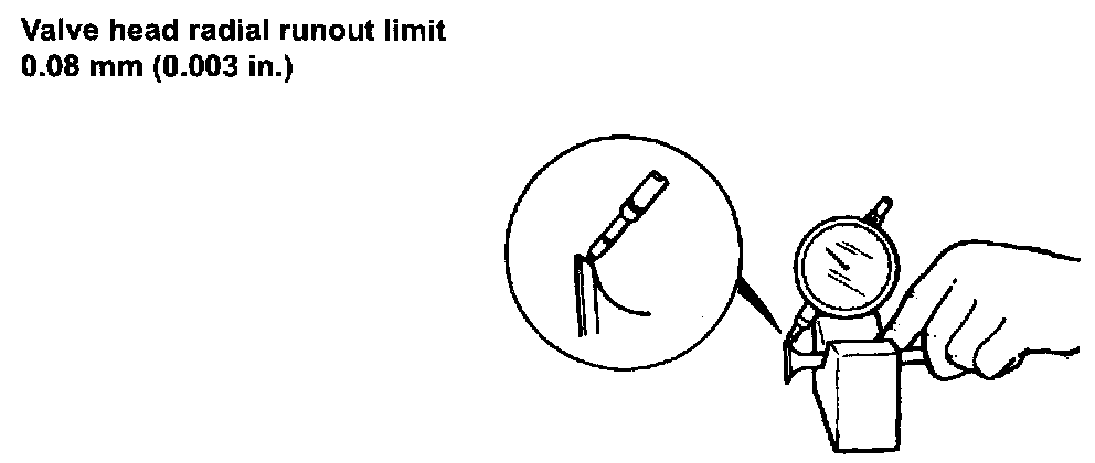 - Check each valve for radial runout with a dial gauge and "V" block. To check runout, rotate valve slowly. If runout exceeds its limit, replace valve.