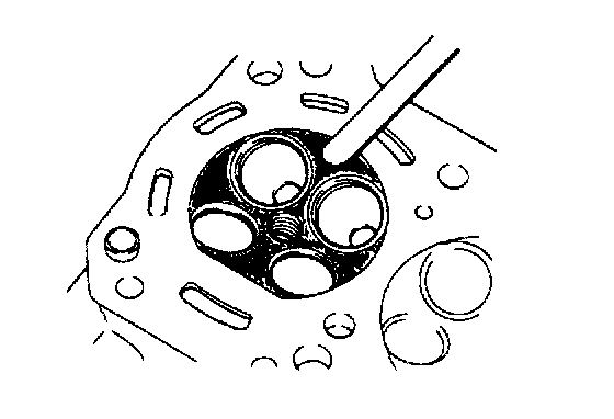 - Inspect each valve for wear, burn or distortion at its face and stem and, as necessary, replace it.