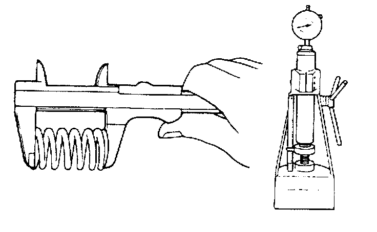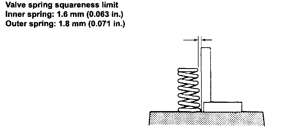 Use a square and surface plate to check each spring for squareness in terms of clearance between end of valve spring and square. Valve springs found to exhibit a larger clearance than limit given must be replaced.